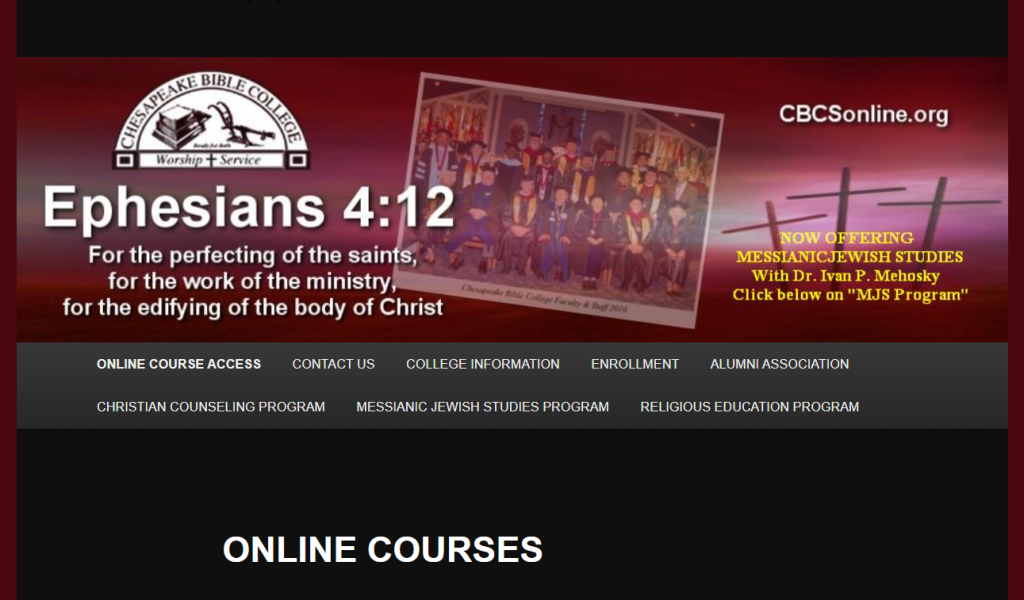 In 2012, the College began preparing its Online initiative – developing an initial curriculum that Students could access to complete the degree program work online via the College’s ChesapeakeBibleCollege.org Website.